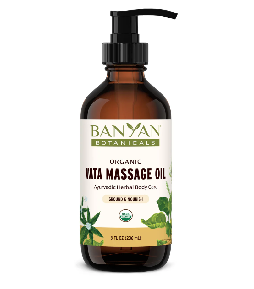 Full body massage with warm herbal oil is one of Ayurveda's most beloved self-care rituals. Crafted with warming herbs that nourish and ground vata dosha, this earthy massage oil relaxes the body, lubricates the tissues, and supports vitality and strength.